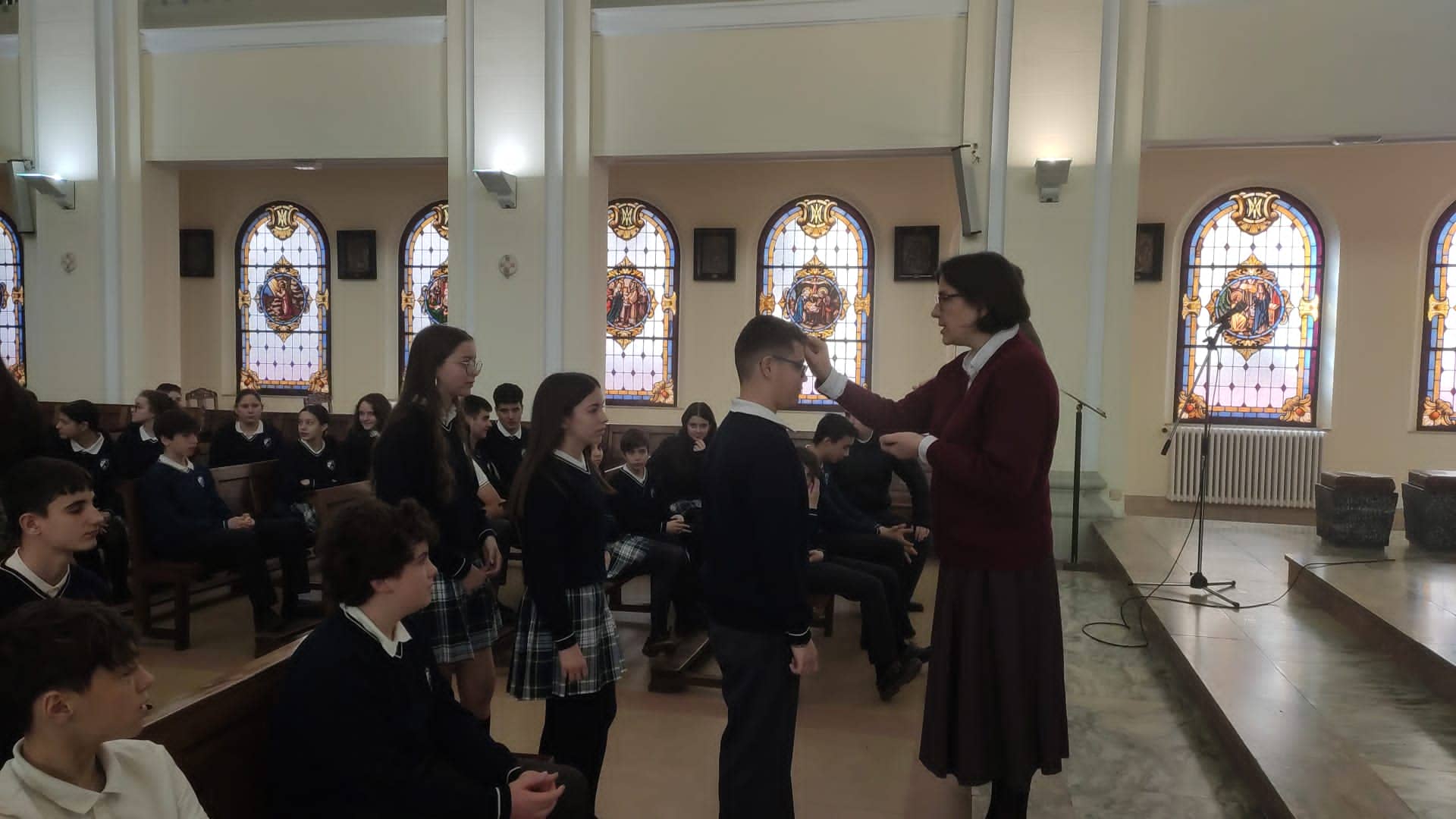 A lo largo del día de hoy nuestros alumnos han bajado a la capilla acompañados de sus tutores para acudir a la celebración de la imposición de la ceniza. Para nosotros, este día es la puerta de entrada al nuevo tiempo litúrgico, la Cuaresma, que a lo largo de sus 40 días nos preparará para la Semana Santa.