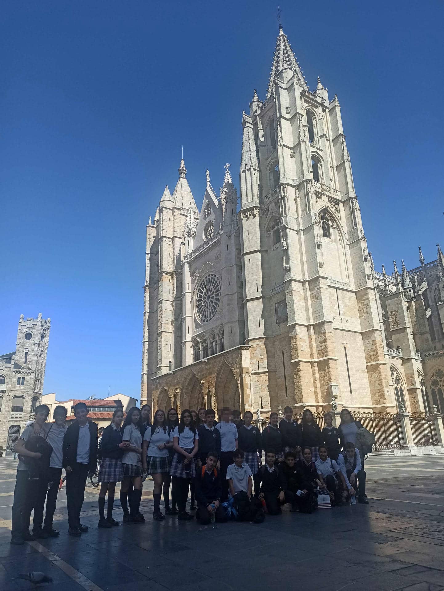 Los alumnos de 1º de ESO hicieron de turistas en el centro de León aprendiendo sobre los sitios más emblemáticos de mano de los guías turísticos de 4º de ESO.Además de ofrecerles información sobre la Plaza Mayor, la capilla de Santo Cristo, la Catedral y otros lugares significativos, los ponían a prueba con problemas matemáticos que debían resolver.