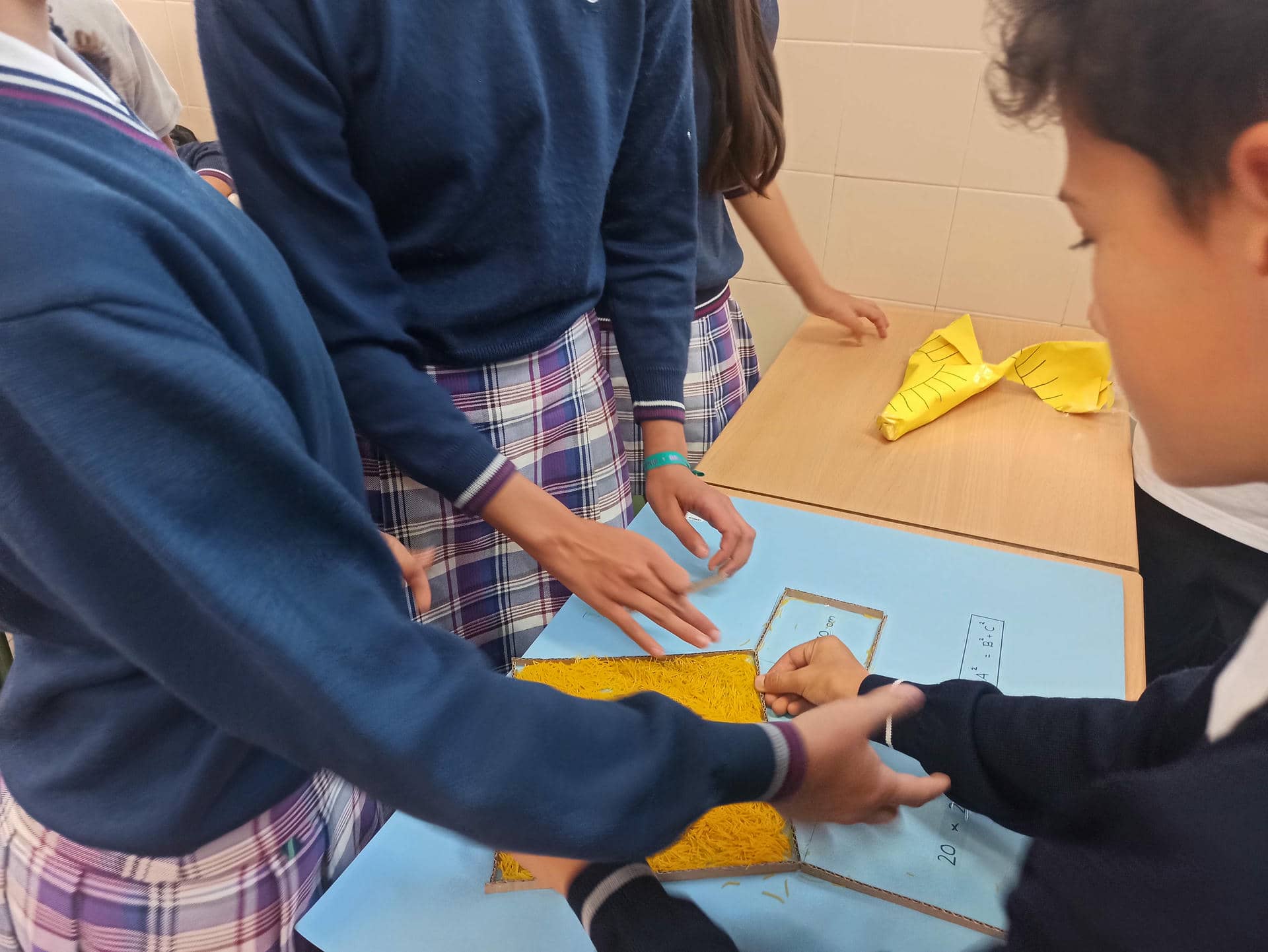 Los alumnos de 1º ESO terminaron el curso demostrando el teorema de Pitágoras. Para conseguirlo, utilizaron judías, canicas o lentejas para rellenar las áreas de los cuadrados que forman los catetos y así abarcar la superficie del cuadrado que forma la hipotenusa.