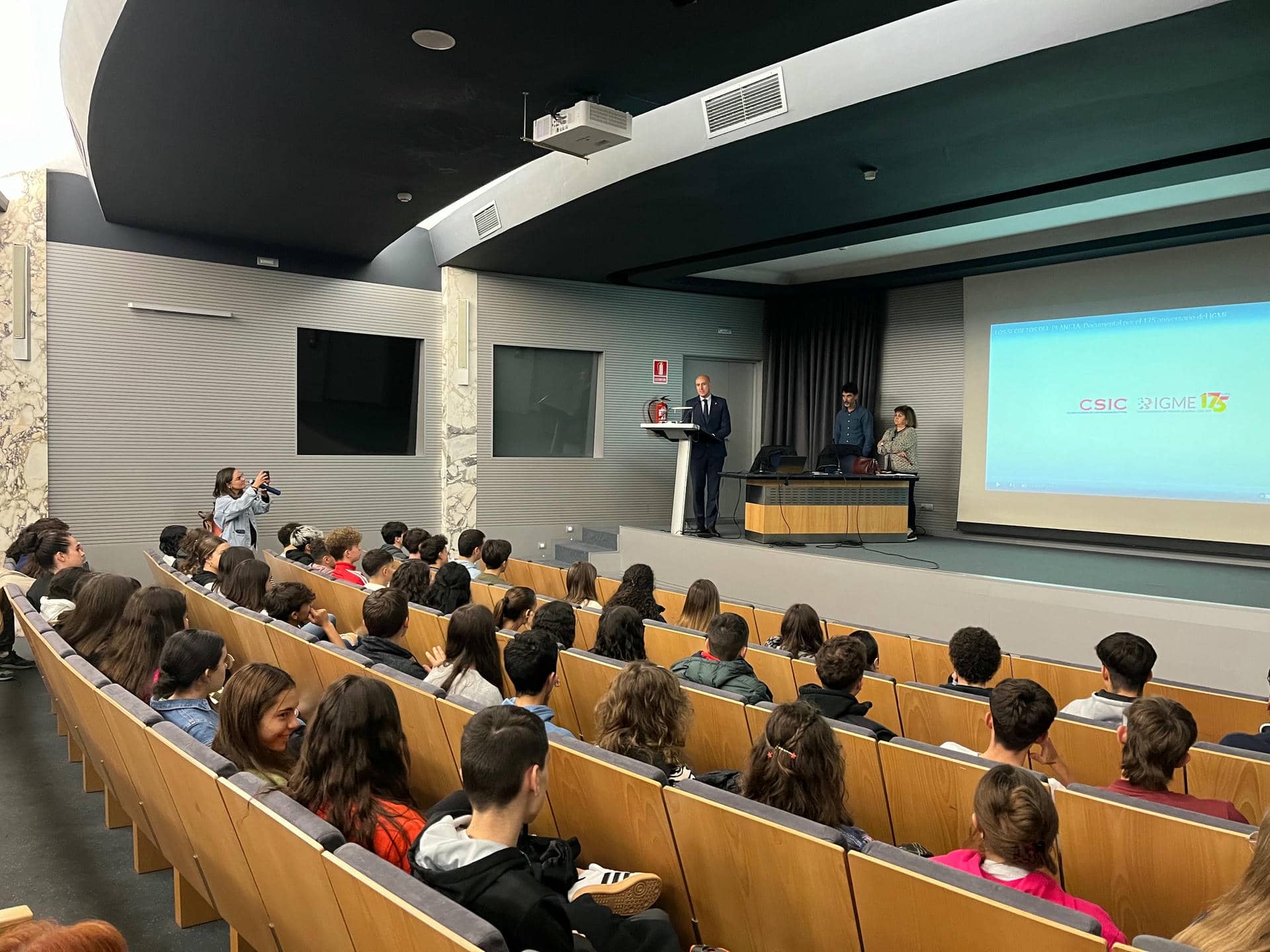 Nuestros alumnos de 1º de Bachillerato han asistido a la proyección del documental "Los secretos del planeta", producido por el Instituto Geológico y Minero de España (IGME) por su 175º aniversario. El alcalde de León, José Antonio Díez, ha introducido el acto y recordado la importancia de la Geología como disciplina científica.