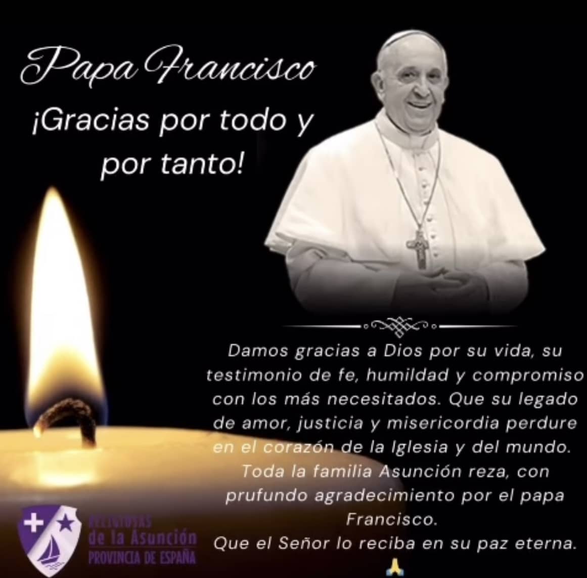 Damos gracias a Dios por la vida del Papa Francisco. Con gratitud y esperanza despedimos a un pastor cercano, profeta, de la misericordia y testigo del Evangelio.