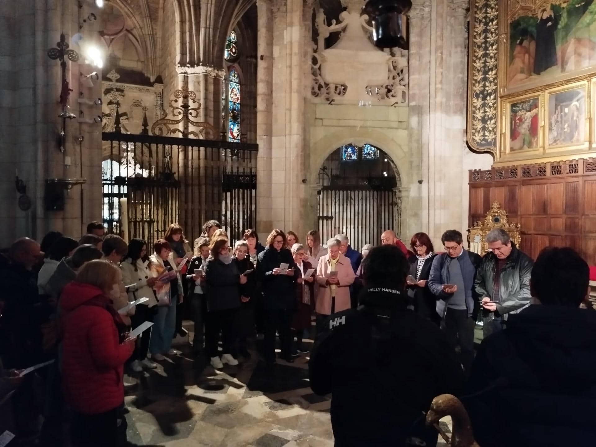 La comunidad de religiosas, el personal en activo del centro, un grupo de trabajadores jubilados y miembros de Asunción Juntos nos reunimos el lunes en la Catedral de León para participar en una eucaristía en la Capilla del Santísimo del templo con motivo del Año Jubilar que celebra la Iglesia durante 2025. Con ella hemos ganado la indulgencia del jubileo.