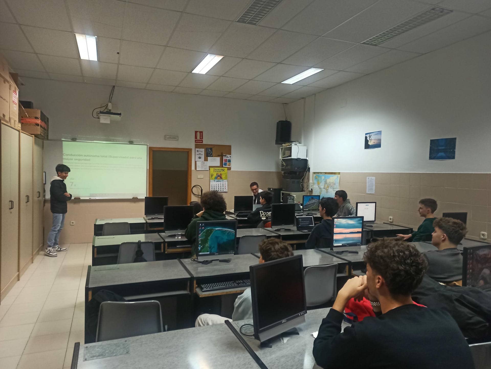 Los alumnos presentan su trabajo utilizando soportes visuales y maquetas digitales o físicas, explicando cómo los vehículos son capaces de desplazarse de forma autónoma gracias a sensores, algoritmos de inteligencia artificial y sistemas de control que interpretan el entorno y toman decisiones de manera automática.