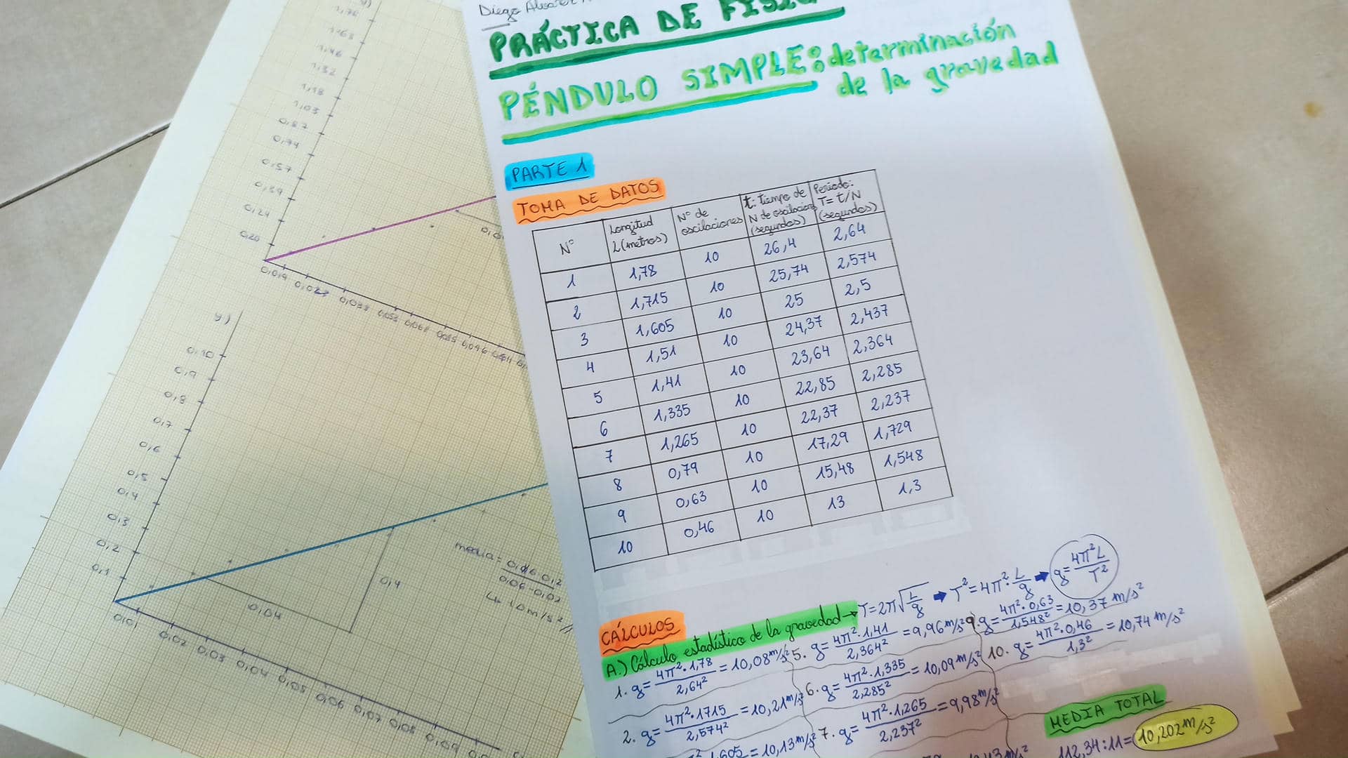 La actividad consistió en medir el tiempo que tarda el péndulo en completar varias oscilaciones y, a partir de esos datos, calcular el valor de la gravedad usando la fórmula correspondiente. El grupo fue refinando sus medidas hasta conseguir resultados bastante cercanos al valor teórico.