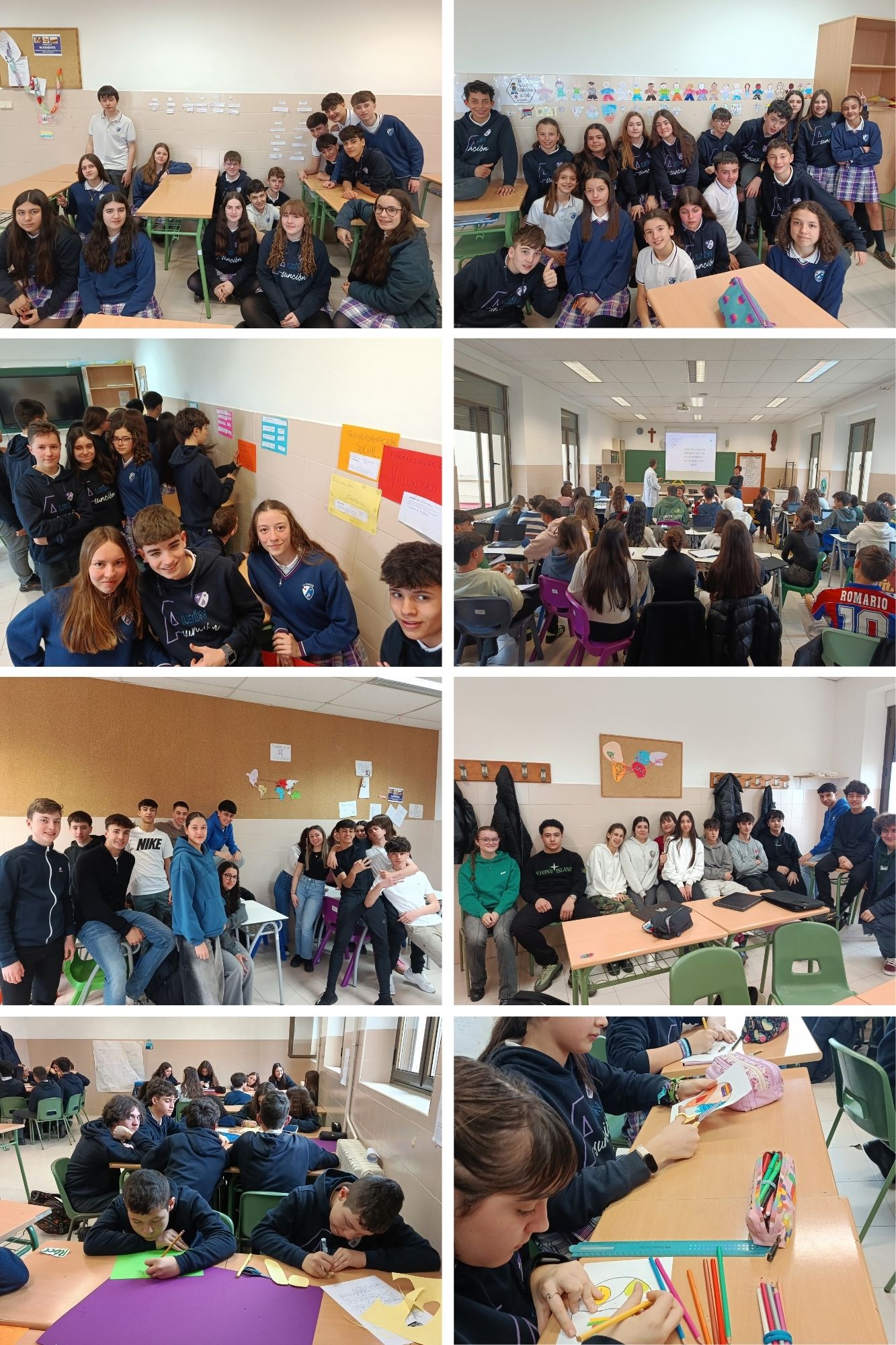Tras la oración, el alumnado de Secundaria y Bachillerato participó en distintas actividades inspiradas en su vida y en el carisma de la Asunción. A través de un test sobre Santa María Eugenia y de tarjetas informativas, los estudiantes descubrieron algunos momentos clave de su biografía: su experiencia de conversión en Notre‑Dame de París, la fundación de la Congregación y su deseo de transformar la sociedad desde la educación y la fe.