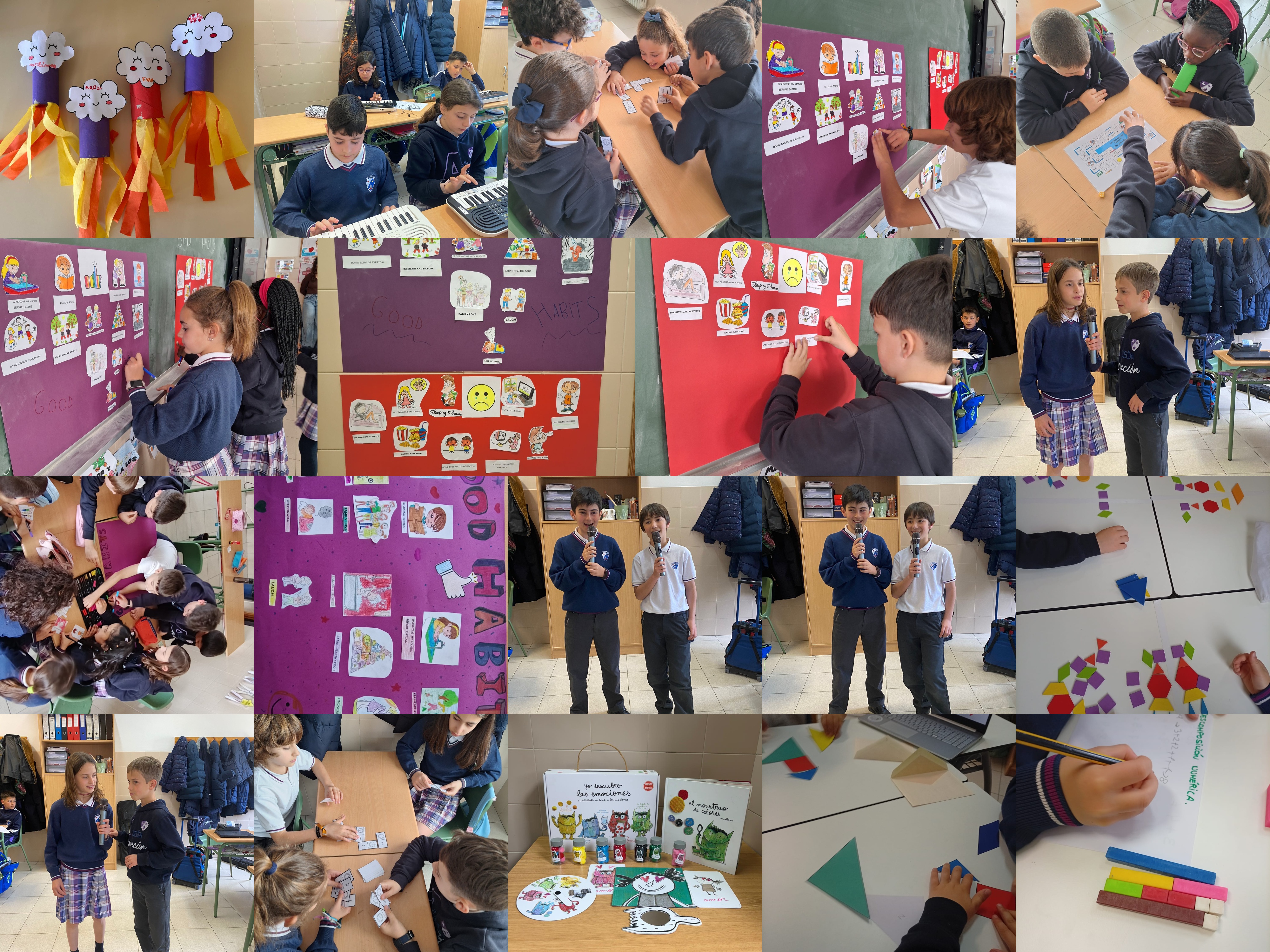 A lo largo de la mañana, los alumnos de primaria participaron en sesiones de respiración consciente, yoga infantil y juegos cooperativos, diseñados para fortalecer la autoestima y la comunicación positiva. Además, actividades sobre alimentación equilibrada y gestión de emociones, adaptados a la edad de cada curso. Cada profesor era el encargado de preparar y motivar a participar en esa actividad dentro de su clase.