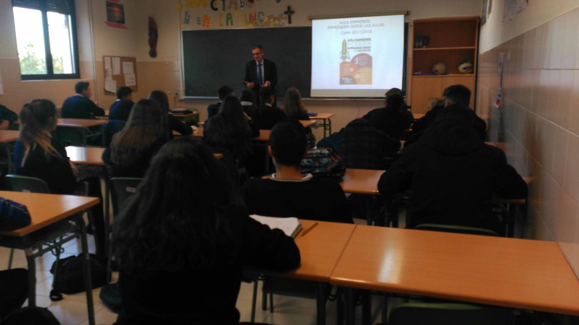 Nuestros alumnos de la asignatura de Economía de 4º de ESO han recibido la visita de Germán, del Instituto Leonés de Desarrollo Económico Formación y Empleo (ILDEFE), para presentar la edición de este año del concurso Aula Emprende, un certamen que desde 2002 se impulsa para fomentar en los jóvenes el espíritu emprendedor. Los estudiantes forman equipos de hasta cuatro personas y trabajan hasta el mes de abril en la elaboración de su proyecto y de un plan de empresa.