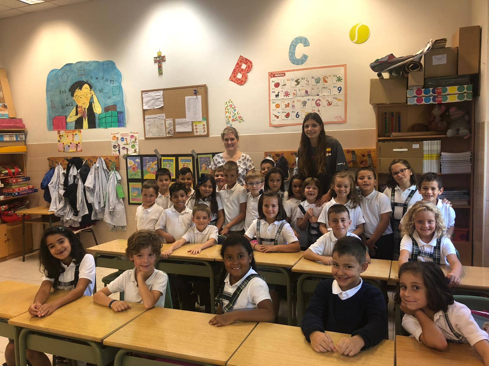 Nuestra alumna de 2º Bachillerato Emma Flórez ha visitado a los chicos y chicas de Primaria para dar a conocer la actividad extraescolar de Baloncesto. Preguntas como "¿Cuántas horas entrenas?", "¿Cuánto mides?" o "¿Contra qué países has jugado?" son algunas de las que Emma ha respondido durante su encuentro con los más pequeños.