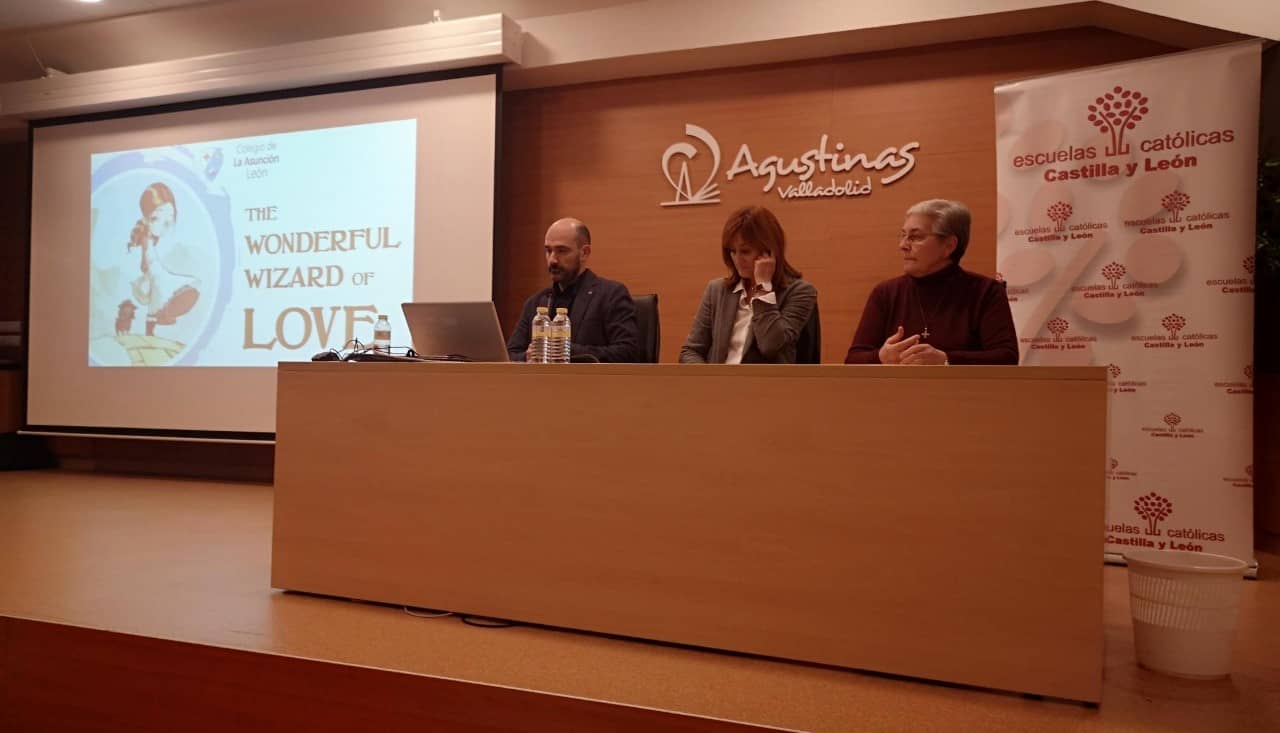 Al encuentro han asistido la Superiora de la Religiosas de La Asunción en León, María Antonia Álvarez; la directora general de nuestro colegio, Isi Carbajo; y el responsable de Pastoral, Manuel Valladares. Allí han presentado "The Wonderful Wizard of Love", experiencia galardonada con el último Premio de Innovación y Experimentación Pastoral de Escuelas Católicas de Castilla y León.