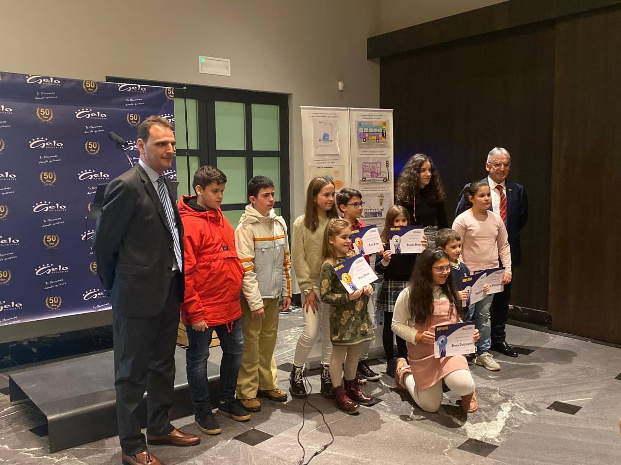 Los alumnos de nuestro centro premiados en el concurso de dibujo "Gelo 50 aniversario" han recibido sus diplomas y premios en el acto organizado por la empresa leonesa Autocares Gelo para celebrar los 50 años de su creación. Los galardonados han sido Mateo Bresme Álvarez, segundo clasificado en la categoría de 3 a 6 años; Lucía González Sánchez, tercera en la categoría de 3 a 6 años; Julia Tudanca Blanco, segundo premio en la categoría de 7 a 12 años; y Lucía Calzado Marcos, primera en la categoría de 13 a 17 años.