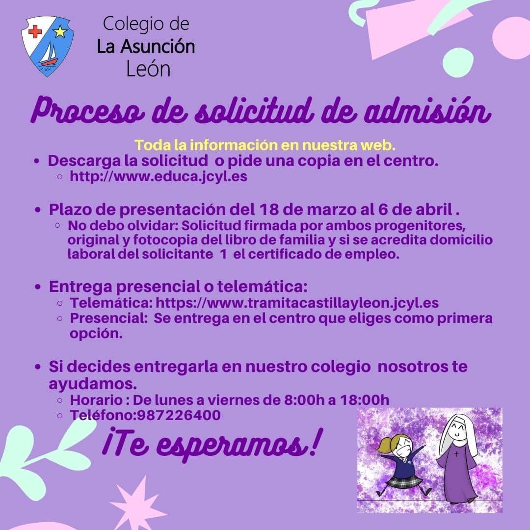 La solicitud de plaza escolar en el periodo de admisión ordinario se realizará con carácter general mediante una única solicitud a través de los siguientes medios: A.-Aplicación web disponible tanto en el Portal de Educación de la Junta de Castilla y León (http://www.educa.jcyl.es) como en la Sede Electrónica de la Administración de la Comunidad de Castilla y León (https://www.tramitacastillayleon.jcyl.es). Acceso web solicitud 2022 Solicitud impresa Para aquellos casos en los que no resulte posible el uso del formulario web, en los centros docentes y en las direcciones provinciales de educación se dispondrá de solicitudes en formato impreso. Estas solicitudes se cumplimentarán manuscritas, firmarán y presentarán de forma presencial en el centro docente elegido como primera opción, junto con la documentación acreditativa que corresponda. Archivoscalendario-proceso-admisión-22-23file_downloadresolución-admisiones-2022-2023file_downloadsolicitud-2022-proceso ordinariofile_download