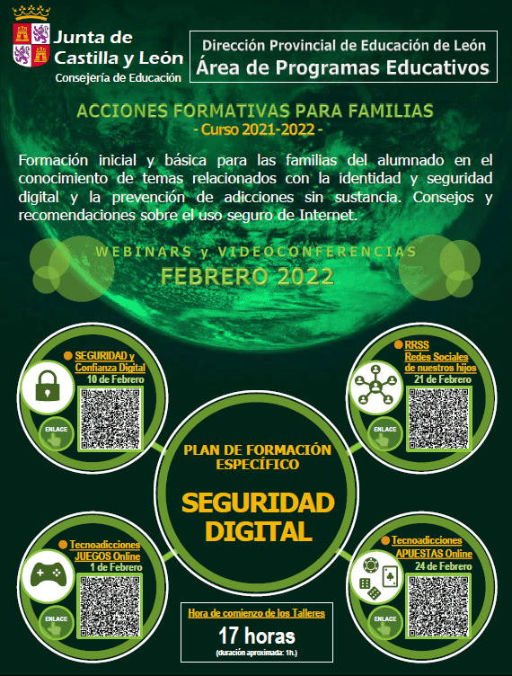 Adjuntamos información sobre los talleres en línea que organiza la Dirección Provincial de Educación dentro de su Plan de Seguridad. Los talleres tendrán lugar los días 10, 21 y 24 de febrero a las 17:00 horas. Los temas que se tratarán tienen que ver con las redes sociales, las tecnoadicciones (juegos y apuestas online) y la seguridad y la confianza digital. Pueden descargar el archivo completo al finalizar esta información.