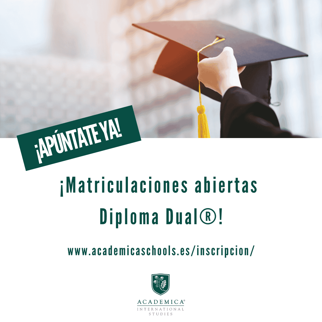 Ya está abierto el plazo de matrícula del Diploma Dual, el programa que permite obtener el título de High School estadounidense mientras se cursan los estudios de Secundaria y Bachillerato españoles. En nuestra web podéis encontrar más información. Podéis contactar con la directora del programa en el colegio, Natalia Gutiérrez, para resolver todas vuestras dudas y ayudaros en caso de que estéis interesados.