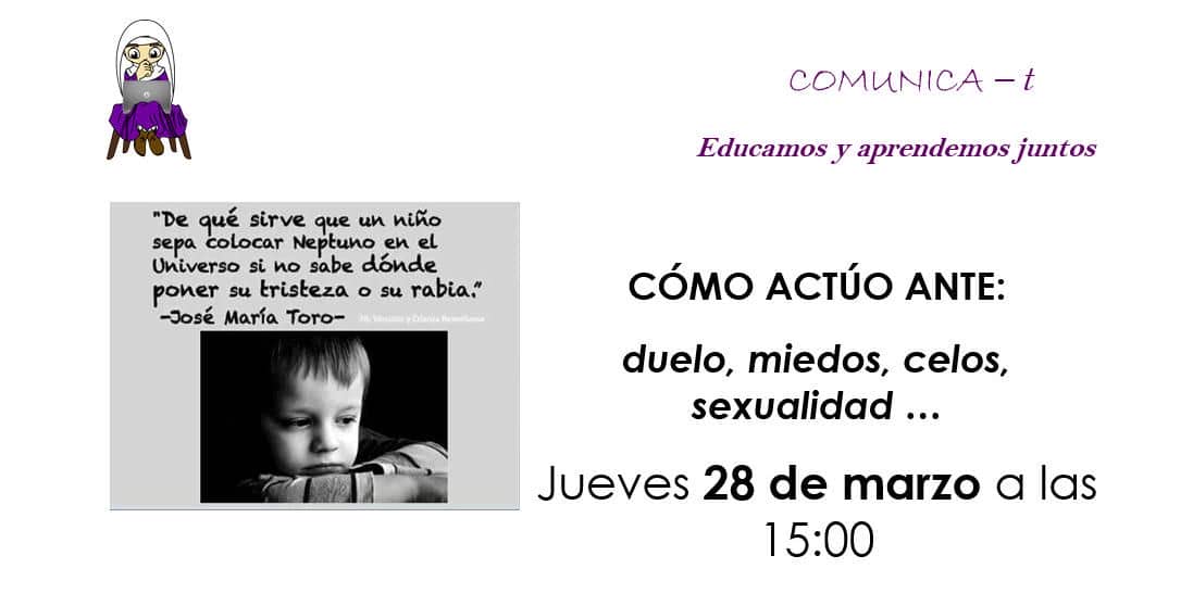 Esta semana en COMUNÍCA-t seguiremos aprendiendo a gestionar situaciones difíciles que pueden desbordar nuestras emociones o producirnos estrés. Daremos pautas de actuación y haremos una puesta en común de recursos a nuestro alcance. Os esperamos en el horario habitual.