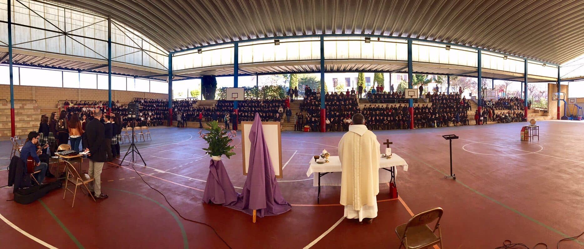 Los alumnos, que han realizado diferentes actividades acompañados de sus profesores y tutores, han asistido a una eucaristía abierta a toda la comunidad educativa. A continuación, se han desplazado al atrio del centro para iniciar de forma oficial las celebraciones del 75 aniversario.
