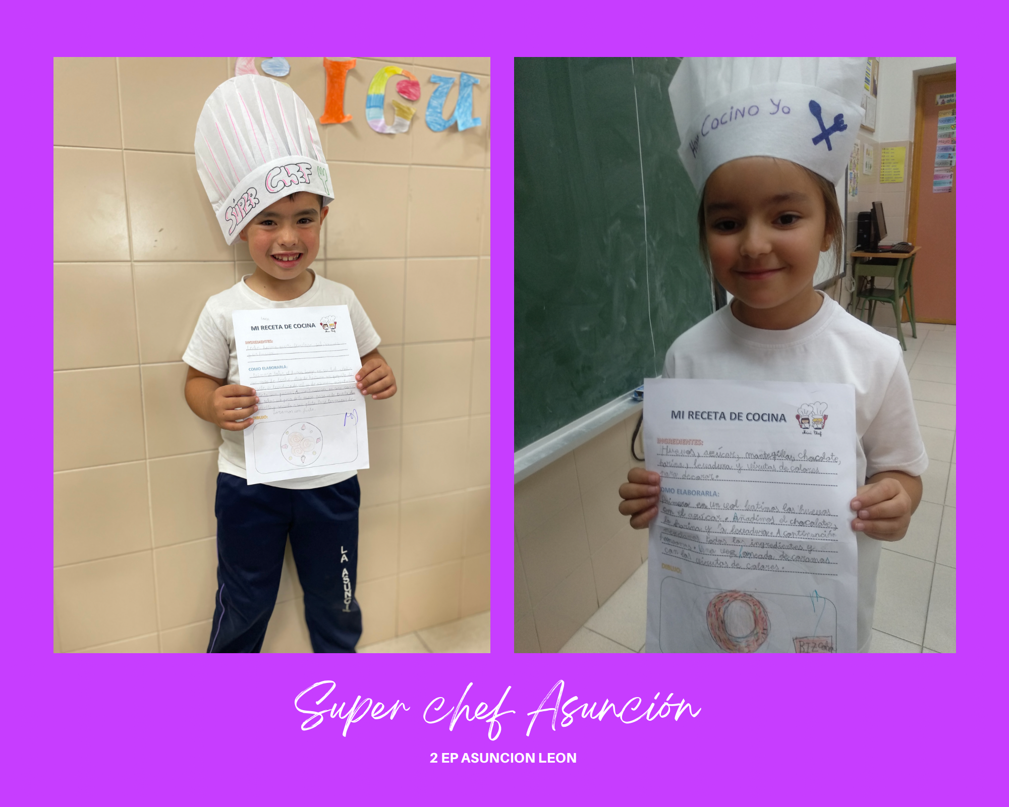 Los alumnos de 2º de primaria, aprovechando que estamos aprendiendo a seguir instrucciones, se han convertido en cocineros por un día. Nos han deleitado con las mejores recetas que ellos conocían, desde rosquillas de San Froilán hasta el Picapollo dominicano, pasando por los bizcochos de yogur y los tan socorridos filetes con patatas.