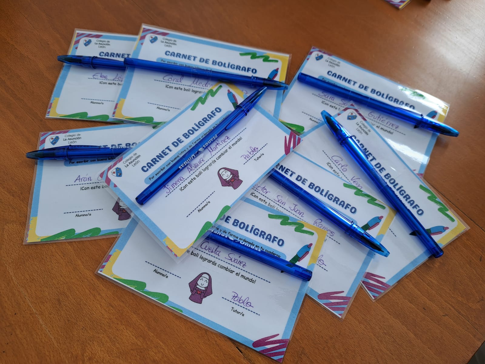 Los alumnos de tercero de primaria han recibido, con sorpresa, el carnet que les permite iniciar una nueva aventura. Comienzan a escribir por primera vez con bolígrafo y su entusiasmo ha quedado reflejado en sus caras. Han recibido su carnet y con muchas ganas comienzan esta nueva andadura con los bolis de colores.