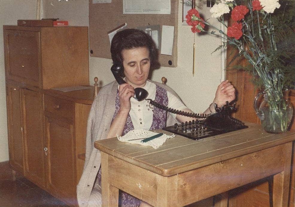 Hoy con nuestra imagen queremos recordar a alguien que seguro que muchas promociones de alumnos recordáis a la perfección: Camino, que durante muchos años atendió en portería a todos los miembros de la comunidad educativa.