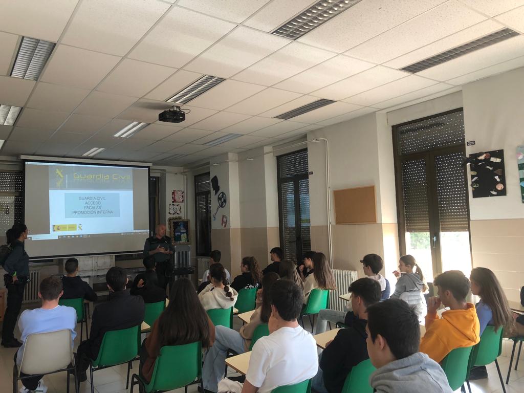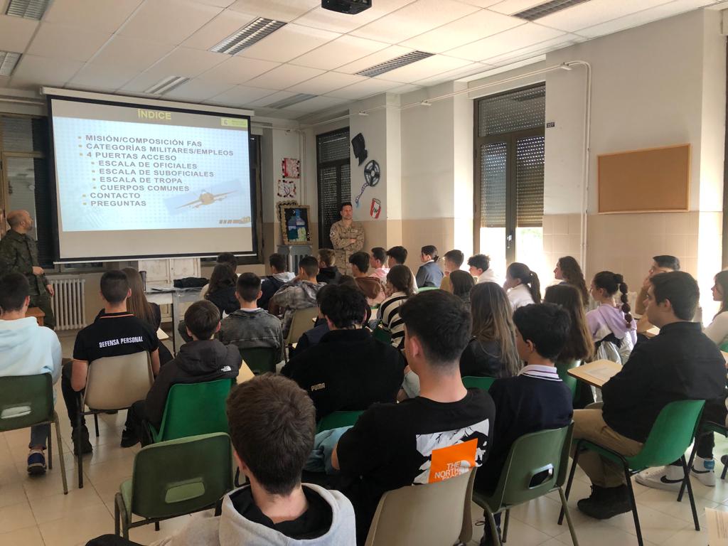 Esta semana hemos recibido la visita de diferentes fuerzas de seguridad del estado para informar a los alumnos interesados del trabajo que realizan y los procedimientos de ingreso en cada cuerpo. La Guardia Civil, la Policía Nacional y el Ejército han compartido tiempo con los muchos estudiantes de 4º de ESO y 1º de Bachillerato que deseaban informarse. ¡Muchas gracias por estas sesiones tan interesantes!