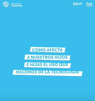 Desde Educación Conectada, iniciativa conjunta de BBVA y FAD Juventud, ponen a nuestra disposición un videotutorial en el que se promueve la reflexión del uso de los dispositivos y su repercusión en el desarrollo de los niños. Os invitamos a verlo.