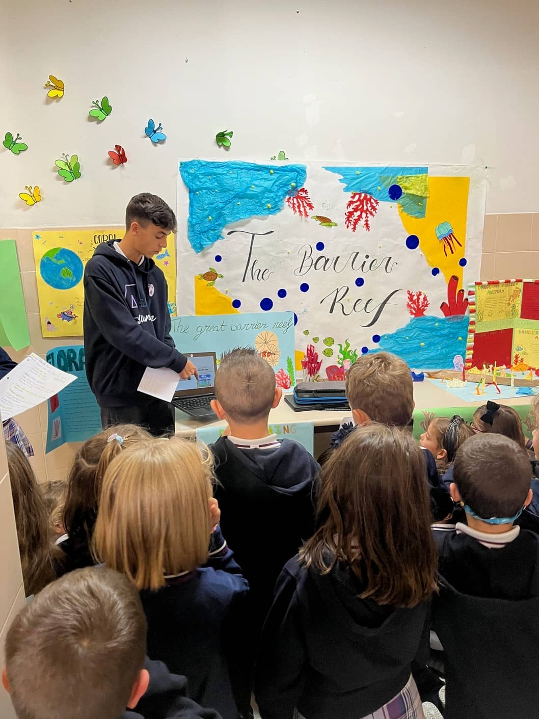 A través de una feria que hemos puesto hoy en marcha, todos los cursos han podido conocer lo que han estado haciendo sus compañeros en estos días: han podido ver ecosistemas, maquetas gigantesy arrecifes de coral. También han hablado con escritores australianos y escuchado canciones tradicionales. Además, han trabajado en clase en estaciones de aprendizaje para completar la experiencia.