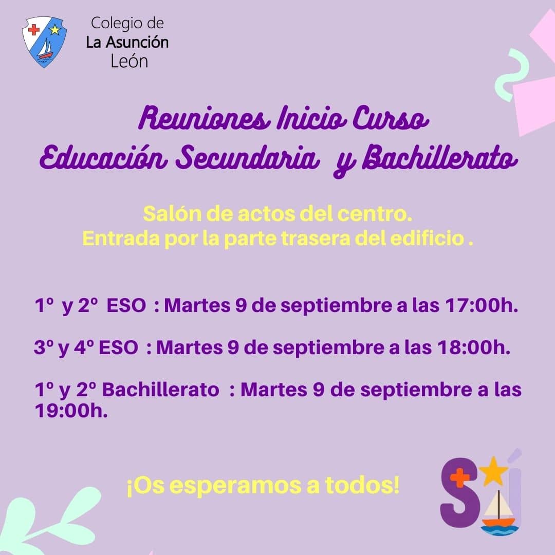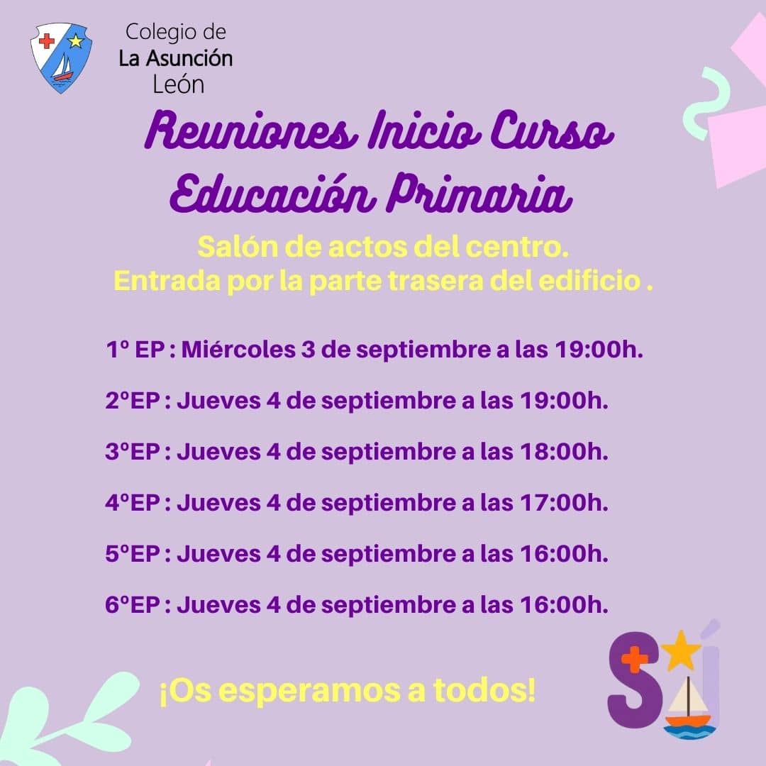 ¡Ya estamos de vuelta! Os informamos de las fechas de las reuniones de familias de inicio de curso: