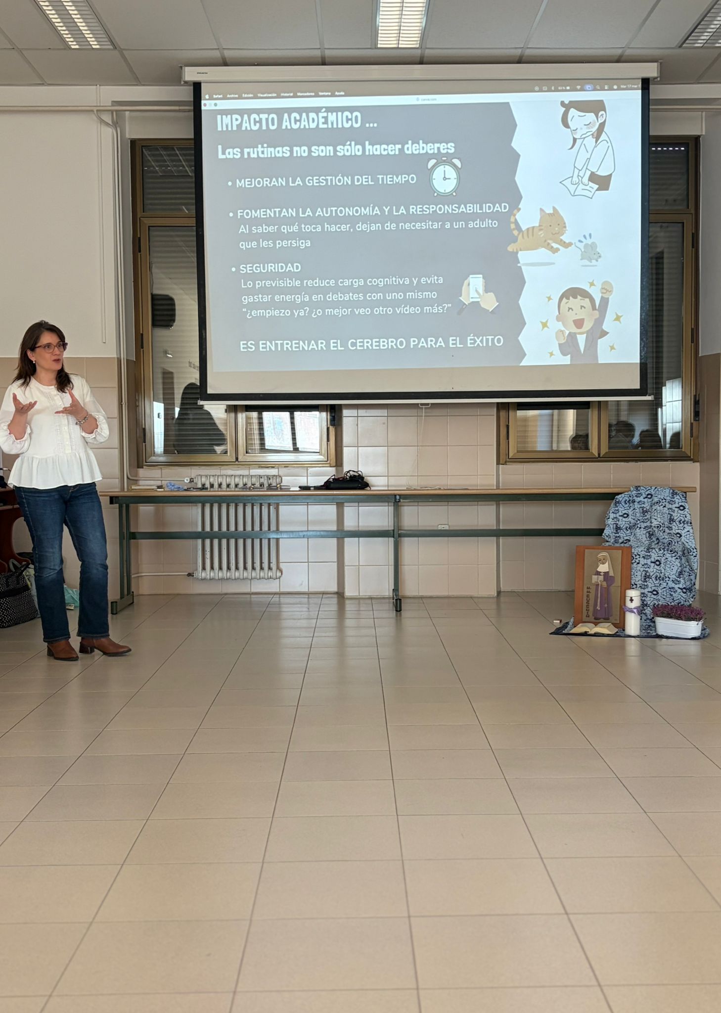La tarde del martes se ha desarrollado la última sesión del trimestre de ComunicaT con la temática de la importancia de las rutinas en los niños y adolescentes. En esta ocasión abierta no solo a las familias del centro, sino a todo aquel que quisiera venir al Colegio La Asunción de León a esta actividad. Se ha discernido los beneficios que tiene para el ser humano la rutina y como comenzar a implantarla desde los primeros años en la etapa de infantil, para luego implementarla en primaria y reforzarla en bachillerato. Relevancia de la gestión del tiempo, la importancia de que un alumno tenga su propio espacio de estudio, conocer las características de los alumnos y los hijos para ayudarles en el desarrollo. Se ha planteado la necesidad de tener un horario y una rutina de trabajo en cada etapa educativa destacando los tiempos de atención que en cada edad del niño y el adolescente es diferente. Finalmente se ha compartido un café en el que cada familia ha podido compartir sus experiencias e inquietudes con sus hijos. En el mes de abril tendremos una nueva sesión, después de las vacaciones de Semana Santa.