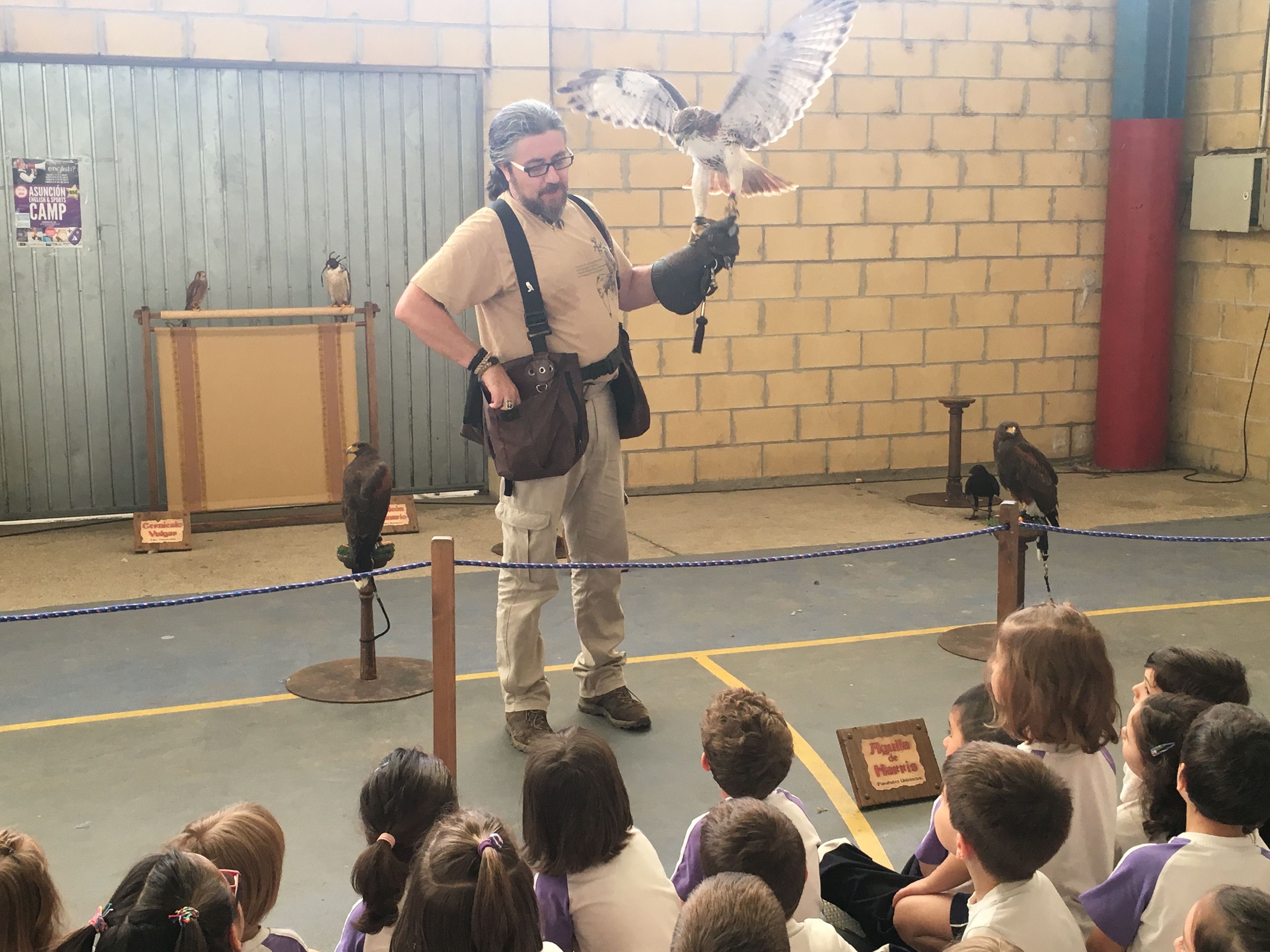 Los alumnos de Educación Infantil y Primaria junto con los de la Guardería han disfrutado hoy de una sesión de cetrería en el semicubierto del colegio. Nuestros alumnos han aprendido muchas cosas sobre dicho arte, sobre los utensilios que se emplean para trabajar con las aves y sobre las propias aves.