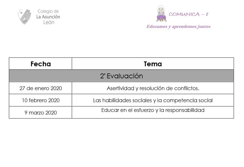 Una evaluación más os invitamos a participar en la actividad COMUNICA-t, un espacio para las familias donde intentaremos resolver las dudas que os surjan en vuestra labor educativa. Compartiremos experiencias, debatiremos e investigaremos sobre métodos de resolución de conflictos y de apertura emocional.